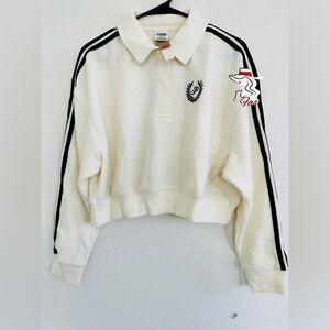 PINK REVERSE FLEECE CROPPED POLO SWEATSHIRT Medium
