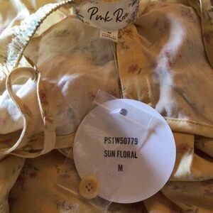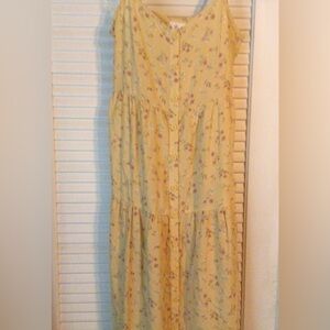 Pretty muted golden yellow with floral ditsy print.