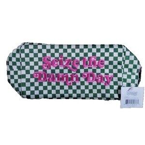 Add motivation to your daily routine with the PINKTAG Seize The Damn Day Checkered Cosmetic Bag. Featuring a bold green checkered design and the empowering phrase across the front, this bag is perfect for makeup, toiletries, or everyday essentials. Made from durable polyester, it measures 9.85" x 5.5" x 3.94", offering plenty of space while remaining compact enough to fit in a purse, backpack, or travel bag. The rectangular shape and secure zippered closure keep your items organized and protected. Lightweight, functional, and stylish, this bag is ideal for home use, travel, or gifting. Whether you’re looking for a trendy makeup organizer or a motivational accessory, the Seize The Damn Day bag delivers both practicality and personality. Brand new and ready to ship, it’s a must‑have for anyone who loves bold, functional fashion.