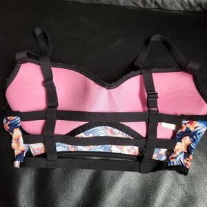 PINK Tropical floral Caged Bralette size SMALL. Beautiful Hawaiian print!
