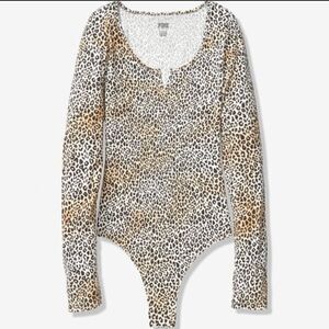 Victoria’s Secret PINK leopard print long sleeve pull on bodysuit. NWT. Pull on style, no snaps at crotch. 95% cotton 5% elastane for stretch fit. Scoop neck with split v neckline. Long sleeves. Wardrobe essential, perfect for layering.