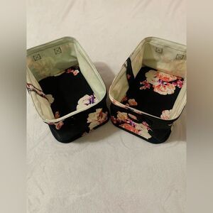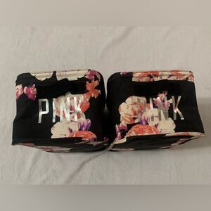 PINK VS HTF VINTAGE BLACK FLORAL STORAGE BIN TRUNK SET OF 2