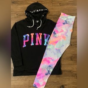 PINK VS WATERCOLOR HOODIE/ WATERCOLOR YOGA LEGGINGS PANTS