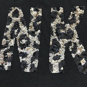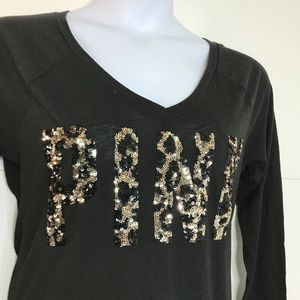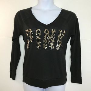 PINK Victoria Secret Leopard Print Sequence Black Long Sleeve Top Size XS
