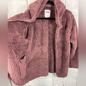 PINK Victoria Secret Sherpa Cardigan Cocoa Powder Mauve Open Front Hoodie