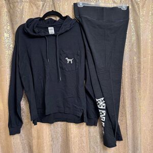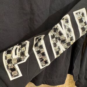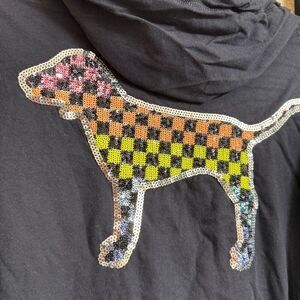 PINK Victorias Secret Checkered Sequin Bling Logo Dog Set Top Leggings S/M