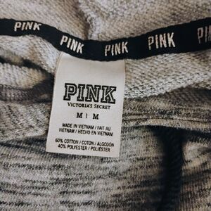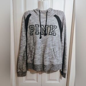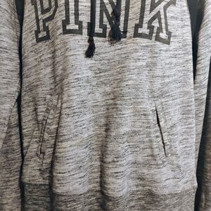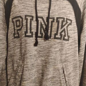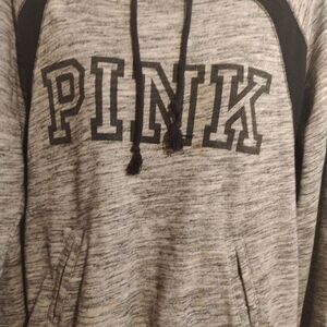 Cozy gray hoodie with black accents. Features 'PINK' logo on front. Perfect for casual wear.