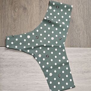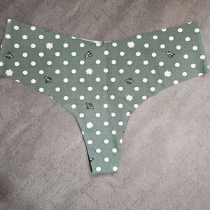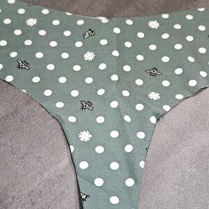 PINK Victorias Secret NO SHOW THONG FOREST GREEN POLKA DOTS & BEES New Small