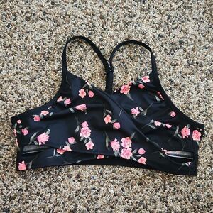 PINK Victoria's Secret ultimate lightly lined, size large, pink flowers with green stems, faux wrap around bra, excellent condition