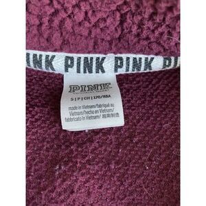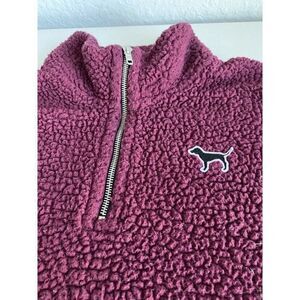 PINK Victoria's Secret Maroon Red Teddy Sherpa Logo Quarter Zip Sz S Logo.