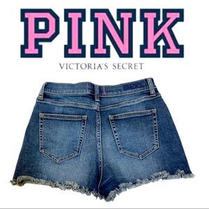 PINK Victoria's Secret High-Waist Denim Distressed Raw Hem Shorts