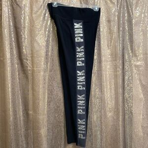 PINK Victoria’s Secret black/gray silver sequin bling leggings, size S
