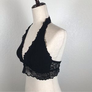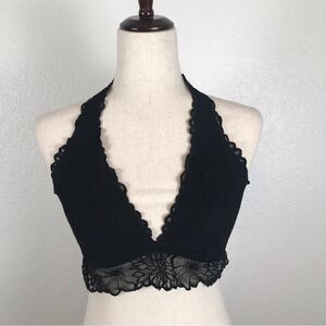 PINK Victoria’s Secret black lace halter bralette L