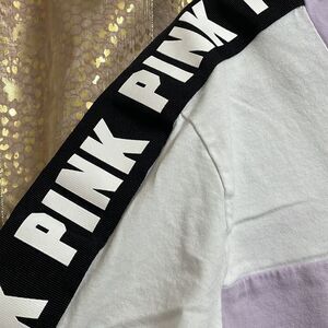 PINK Victorias Secret lavender/white/black lace up logo t-shirt, size S