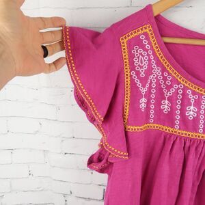 PINK WITH WHITE & ORANGE EMBROIDERY DETAIL SHORT RUFFLE SLEEVE BABYDOLL MATERNITY TOP SIZE XL PRE OWNED NO FLAWS