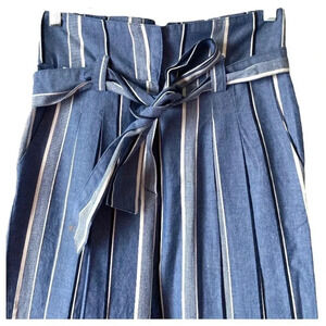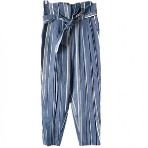 PINKYOTTO | High-Waisted Striped Paperbag 100% Cotton Pants Self Tie Belt Size S