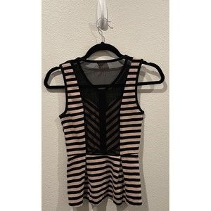 PINS AND NEEDLES Sleeveless Striped Mech Tan Black Tank Top. Size S