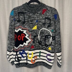 STYLE: FUN VINTAGE SWEATER, MUSIC THEME, CREW NECK, 100% ACRYLIC