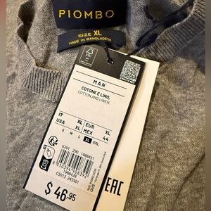 PIOMBO Men’s Gray Long Sleeve Cotton/Linen Sweater