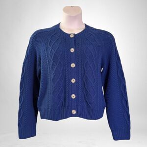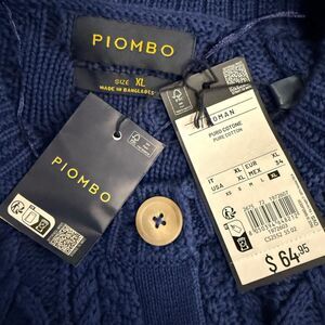 PIOMBO Ribbed Cable Knit Button Front Navy Cardigan, NWT XL