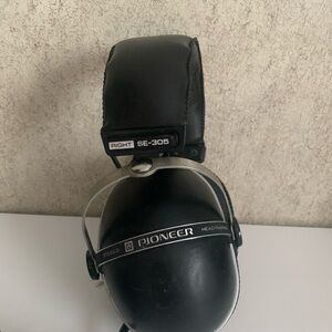Classic PIONEER headphones with sleek black design. Silver accents enhance the style. Comfortable ear padding.