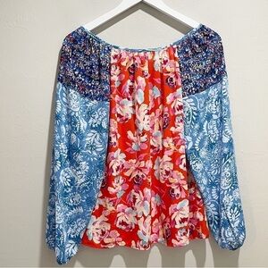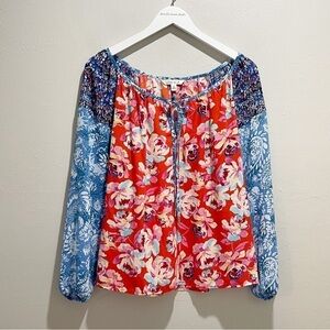 PIONEER WOMAN Women’s MIXED PRINT PEASANT BLOUSE Red Blue SOLD OUT Size XS