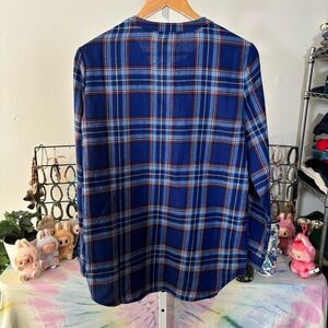 PIONEER WOMAN size small Blue Plaid Floral Embroidered Shirt flannel boho