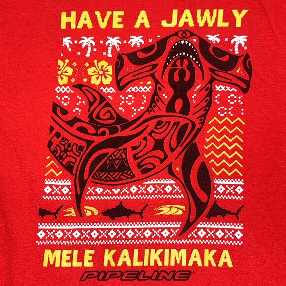 PIPELINE MENS XL HAWAIIAN SHARK CHRISTMAS GRAPHIC T-SHIRT RED COTTON