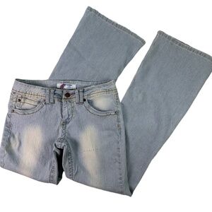 PIPER & BLUE Light Wash Bleach Fade Detailing Wide Leg Womens Flare Jeans Size 9
