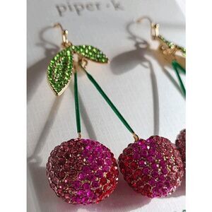 ๐ PIPER K Cherry Glass Stones Enamel Nickel Free Drop Statement Earrings