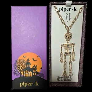 PIPER K Halloween Articulated 32” Glass Stone Crystal Skeleton Necklace NEW NWT