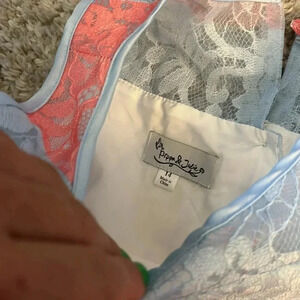 PIPPA AND JULIE STRIPE LACE DRESS IN CORAL/ BLUE