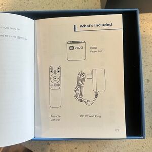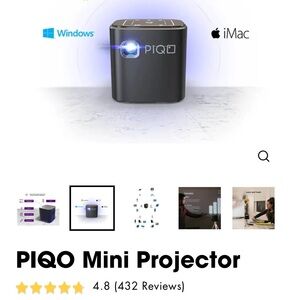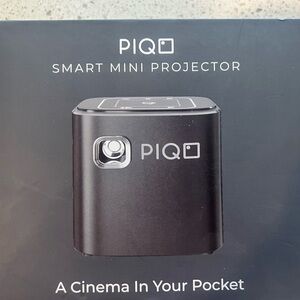 Compact black mini projector by PIQO. Ideal for portable entertainment.