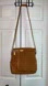 This messenger bag features a burnt orange leather and canvas design, offering a classic and practical style. Its structured shape and worn leather finish make it a versatile choice for travel and business occasions. The bronze-tone hardware adds a touch of elegance to this functional accessory. Stylish, with both leather and metal zipper pulls, the lining is a lime green with multiple pockets and card slips for organizing. This bag is very functional!