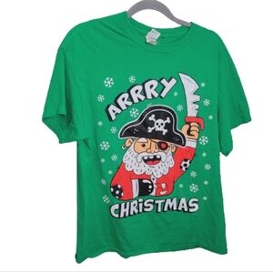 PIRATE TEE "ARRRRY CHRISTMAS green red black large piratecore