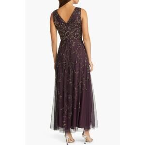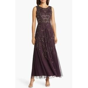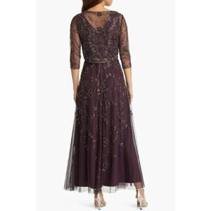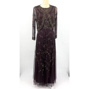 PISARRO NIGHTS Beaded Mesh Gown with Jacket Size 12 Purple Eggplant NWOT
