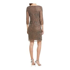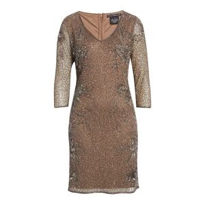 PISARRO NIGHTS Beaded V-neck Cocktail Dress in mocha. NWOT. Does not have brand tags does have retailer tag.