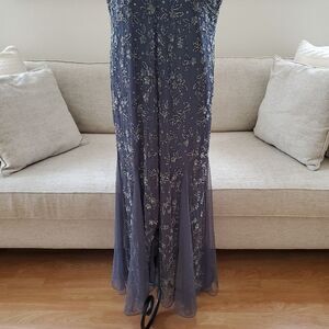 💎 PISSARO NIGHTS 💎 Beaded Godet Gown [size 14, Grey Blue]