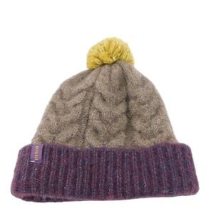 When the mercury drops, grab your Minzy beanie. This women's knit hat stays cozy in a snuggly cable-knit design. A ribbed cuff and oversize pompom in complementary colors give it a look that's a little bit traditional and a little bit modern.