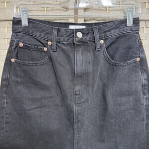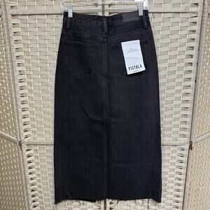PISTOLA ALICE DENIM MIDI SKIRT SIZE 27 BLACK UNDERGROUND WASH RAW HEM SLIT NEW