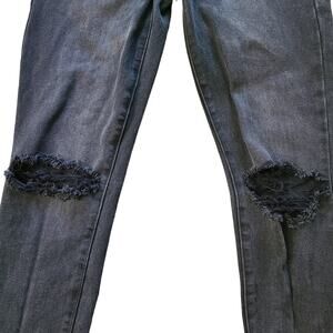 PISTOLA Keaton Distressed Busted Knee Straight Leg Button Fly Jeans Black P6430FBK-TAU Women's Size 24