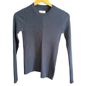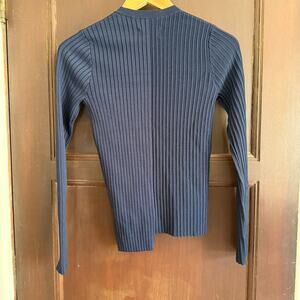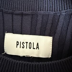 PISTOLA Navy Blue Betty Ribbed Asymmetric Hem Crewneck Sweater Medium