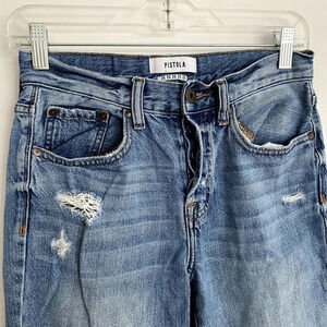 PISTOLA Revolve Charlie High Rise Straight Medium Wash Frayed Hem Jeans