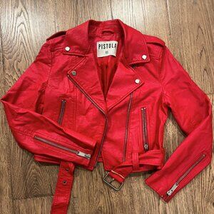 PISTOLA Tracy Cropped Vegan Leather Moto Jacket