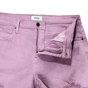 Experience ultimate comfort and style with the PISTOLA Womens Shorts in Lavender. These mid-rise shorts feature a comfort stretch denim material and raw scissor cut hem for a chic, distressed look.