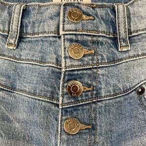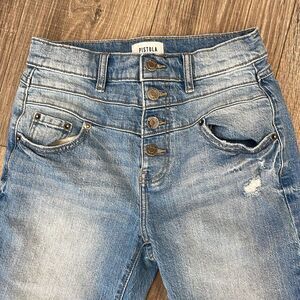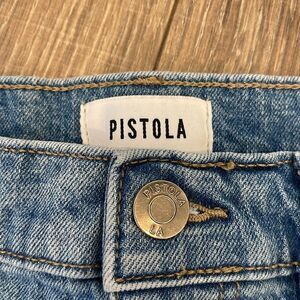 PISTOLA exposed button raw hem skinny jean