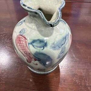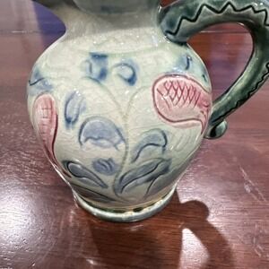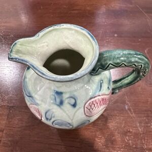 PITCHER, Creamer, GREEN CERAMIC WITH FLORAL PATTERN MADE IN JAPAN Very Nice Pc