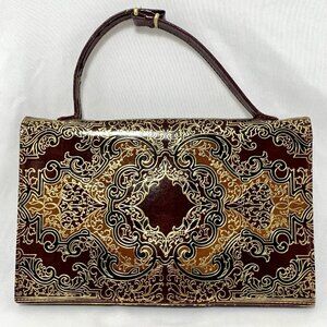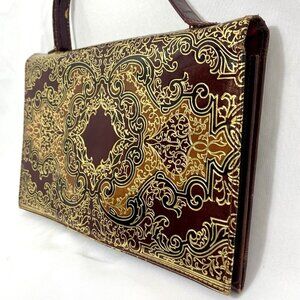 PITTI Italian Mid Century Blood Red Gilt Embossed Leather Clutch Wallet Gorgeous
