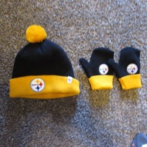 PITTSBURG STEELERS CAP/HAT AND PAIR OF MITTEN TO FIT A 3-4 YEAR OLD