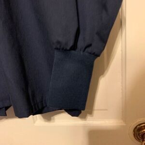 PITTSBURGH PANTHERS SIZE SMALL LANDAU SNAP FRONT SCRUB TOP.  POLYESTER/COTTON, SNAP UP FRONT, ELASTIC LOWER SLEEVES, 20" ARMPIT TO ARMPIT, 28" LONG.  Good condition.